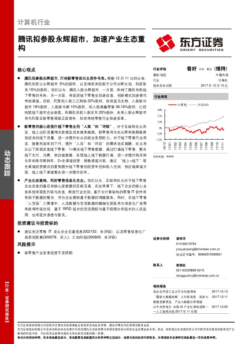 东方证券:计算机行业:腾讯拟参股永辉超市,加速产业生态重构.pdf