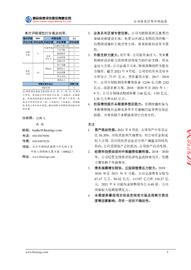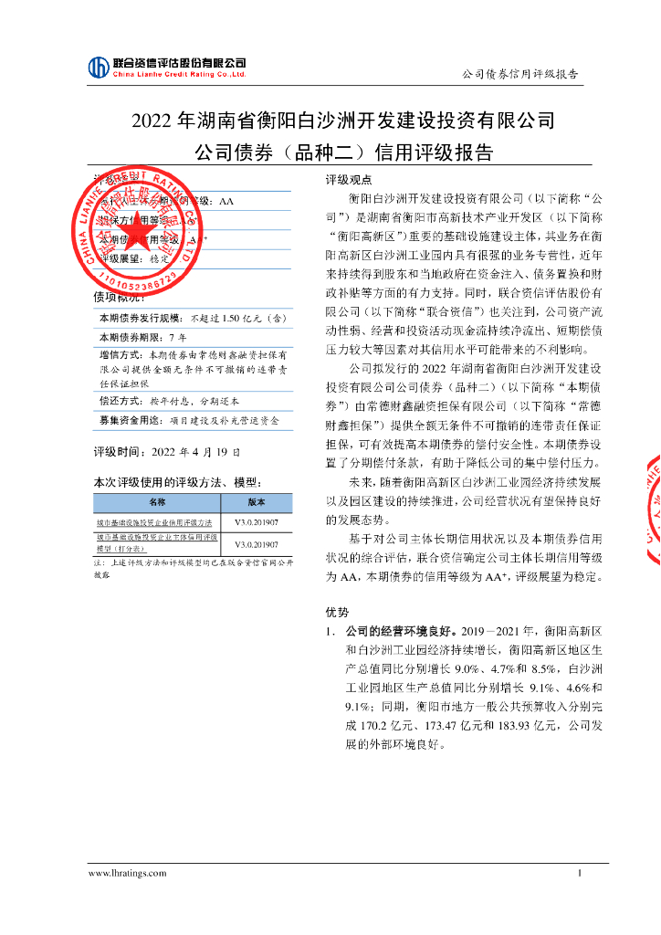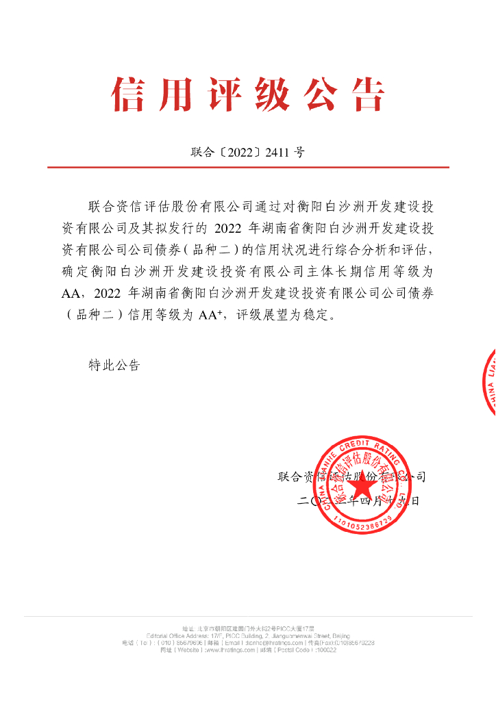 联合资信:2022年湖南省衡阳白沙洲开发建设投资有限公司公司债券(品种二)信用评级报告.pdf