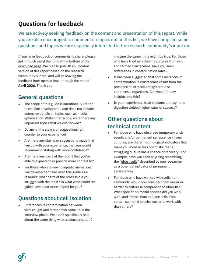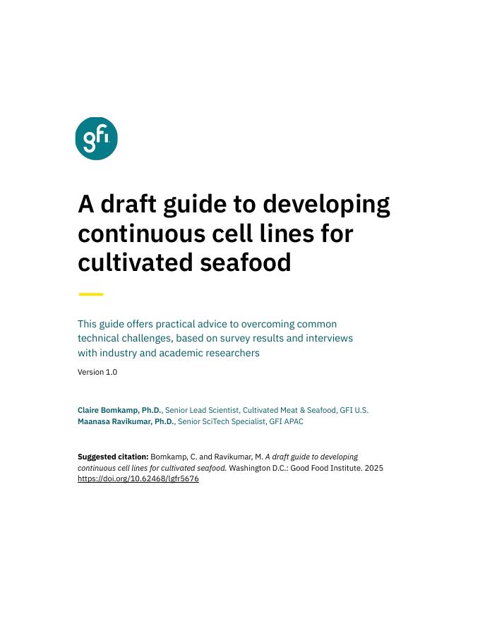 Good Food Institute:2025年用于养殖海鲜的持续细胞系开发的草稿指南报告(英文版).pdf