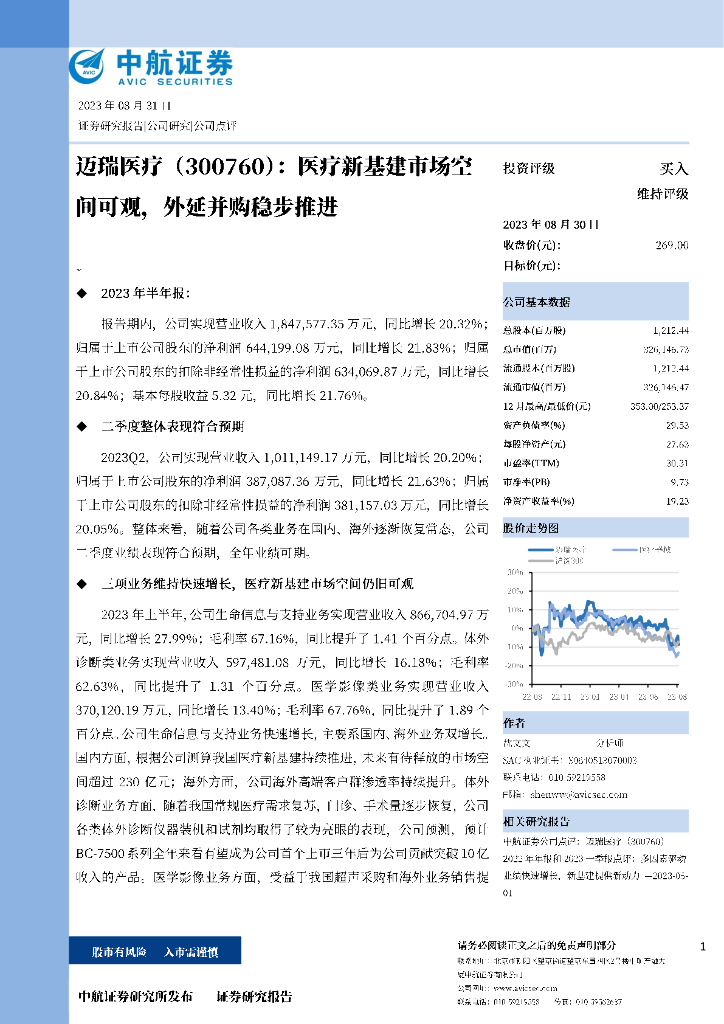 中航证券:迈瑞医疗(300760)-医疗新基建市场空间可观,外延并购稳步推进.pdf