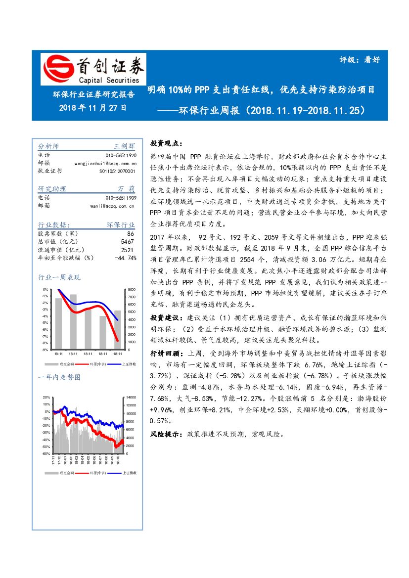 首创证券:环保行业周报:明确10%的PPP支出责任红线,优先支持污染防治项目.pdf