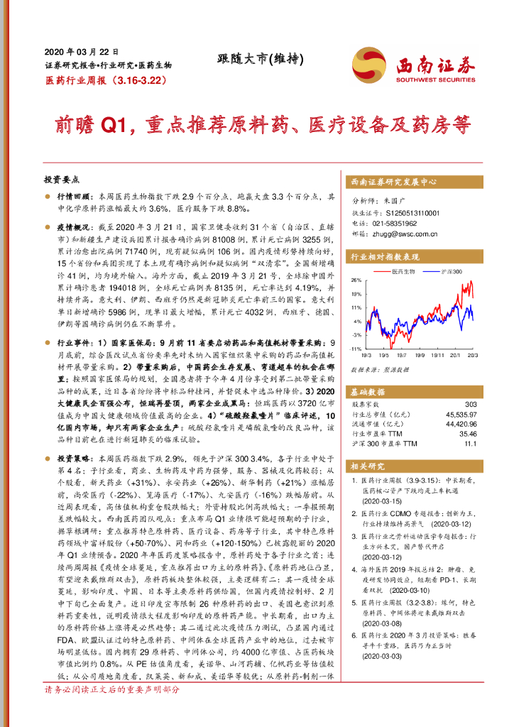西南证券:医药生物行业周报:前瞻Q1,重点推荐原料药、医疗设备及药房等.pdf