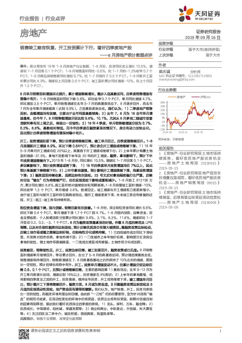 天风证券:8月房地产统计数据点评:销售竣工略有恢复,开工投资累计下行,看好四季度地产股.pdf
