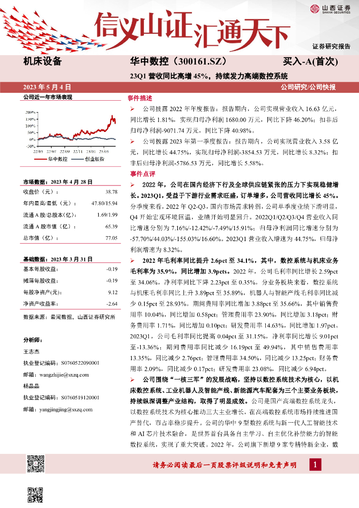 山西证券:华中数控(300161)-23Q1营收同比高增45%,持续发力高端数控系统.pdf
