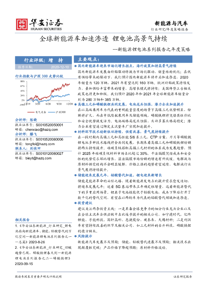 华安证券:新能源锂电池系列报告之年度策略:全球新能源车加速渗透 锂电池高景气持续.pdf