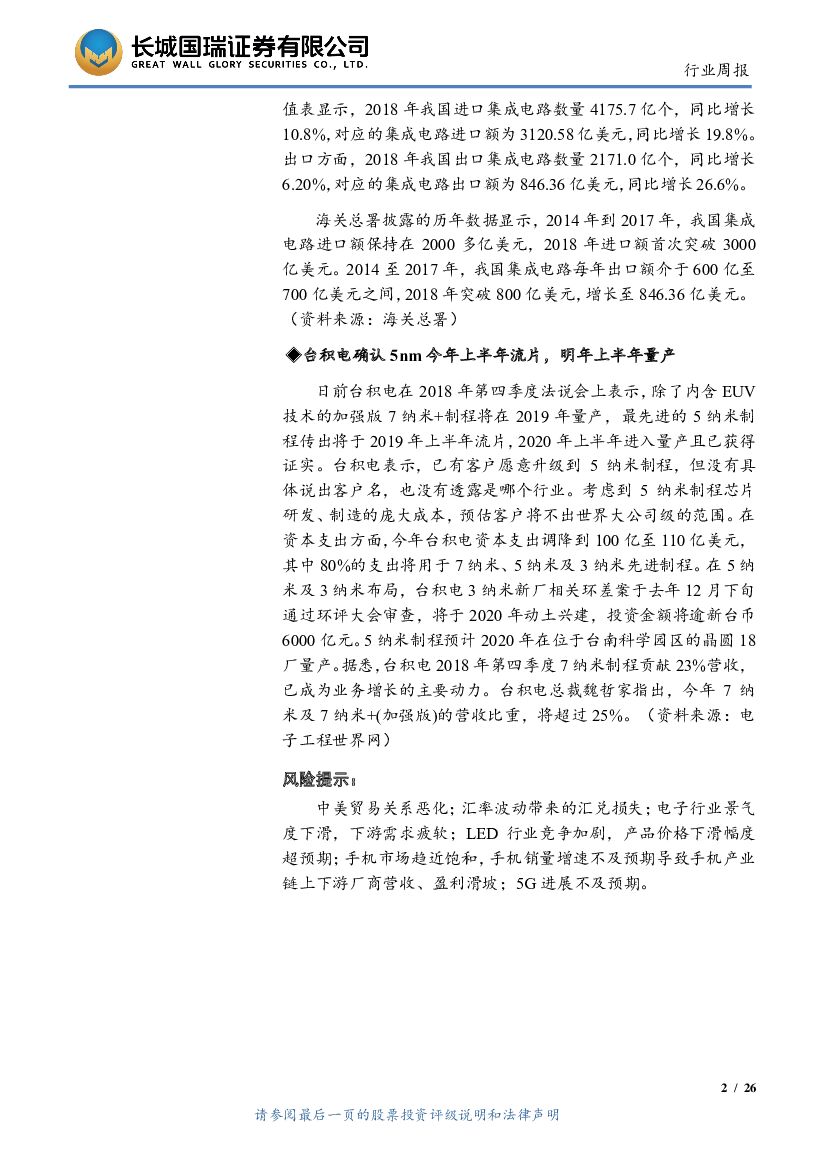 长城国瑞证券:电子行业双周报2019年第2期(总第2期):我国集成电路进口额首次突破3000亿美元,国产替代空间巨大.pdf