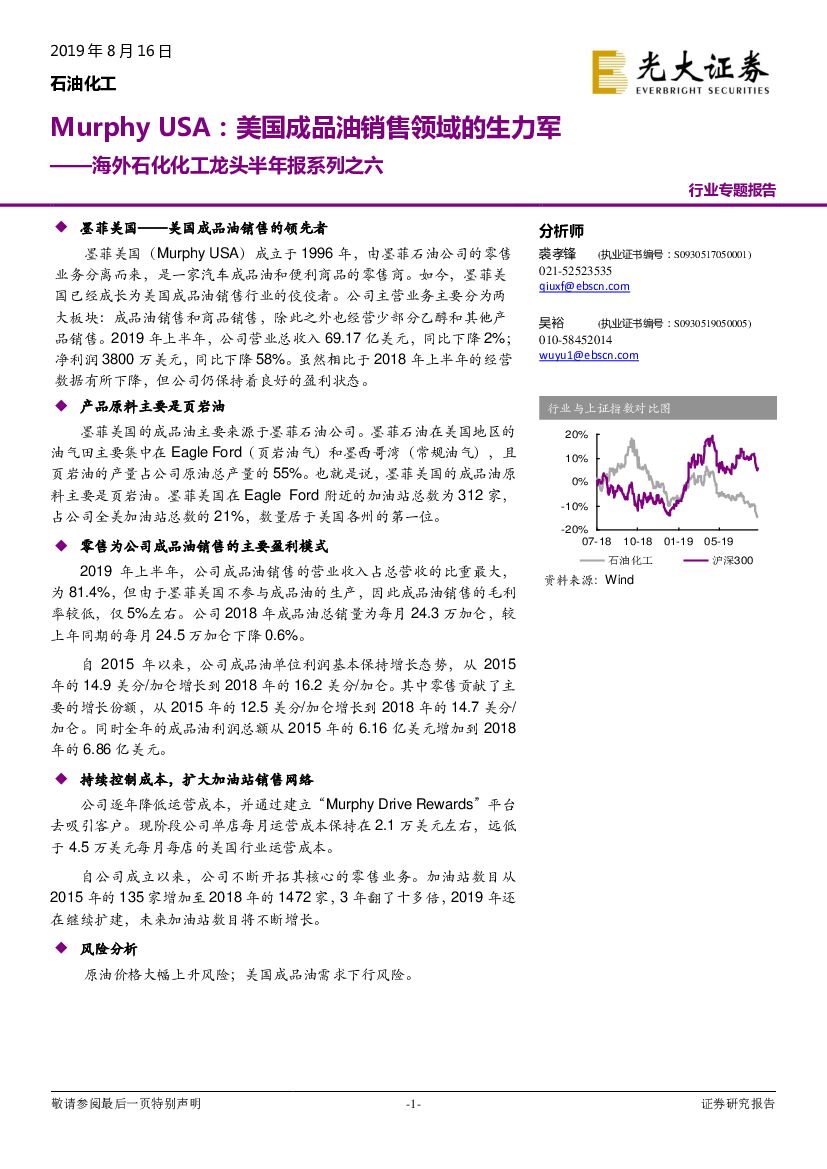 光大证券:海外石化化工龙头半年报系列之六:Murphy USA:美国成品油销售领域的生力军.pdf