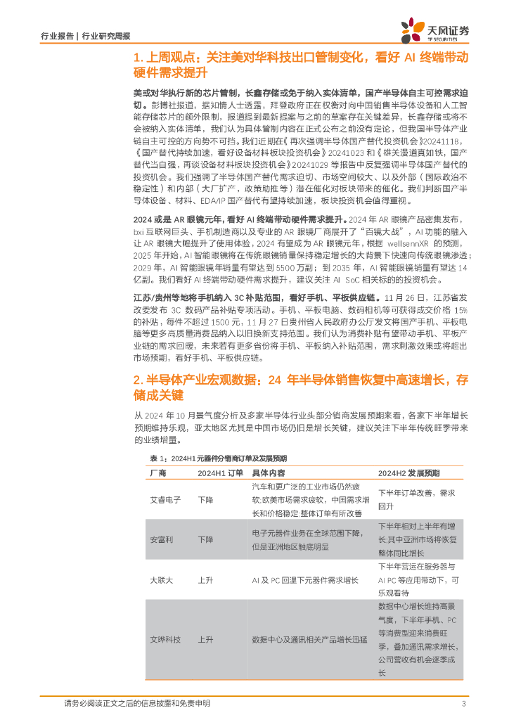 天风证券:半导体行业研究周报:关注美对华科技出口管制变化,看好AI终端带动硬件需求提升.pdf