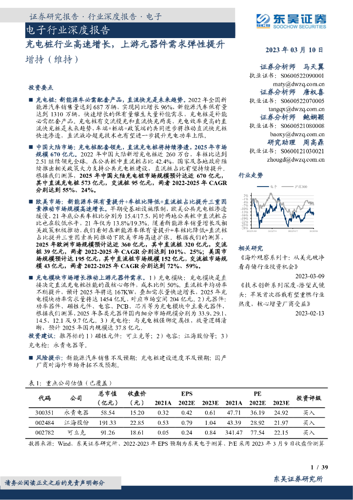 东吴证券:充电桩行业高速增长,上游元器件需求弹性提升.pdf