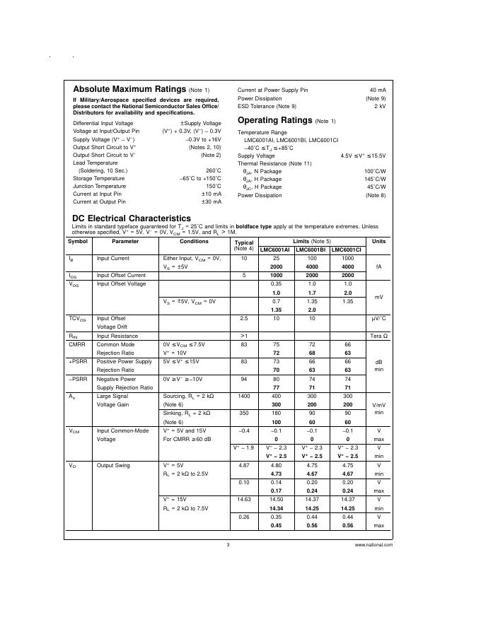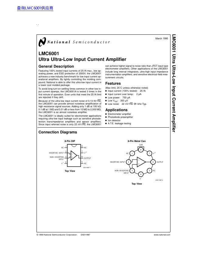 National Semiconductor LMC6001 Ultra Ultra-Low Input Current Amplifier 数据手册.pdf