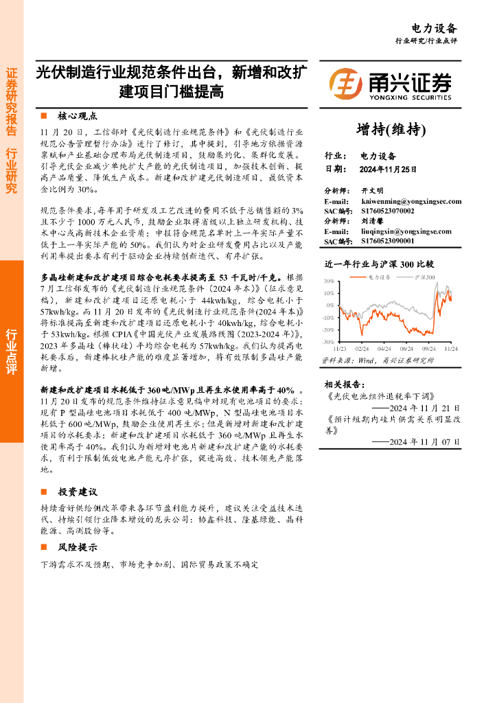 甬兴证券:电力设备:光伏制造行业规范条件出台,新增和改扩建项目门槛提高.pdf