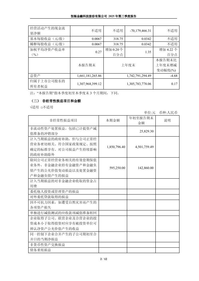 603106-恒银科技:恒银金融科技股份有限公司2025年第三季度报告.pdf