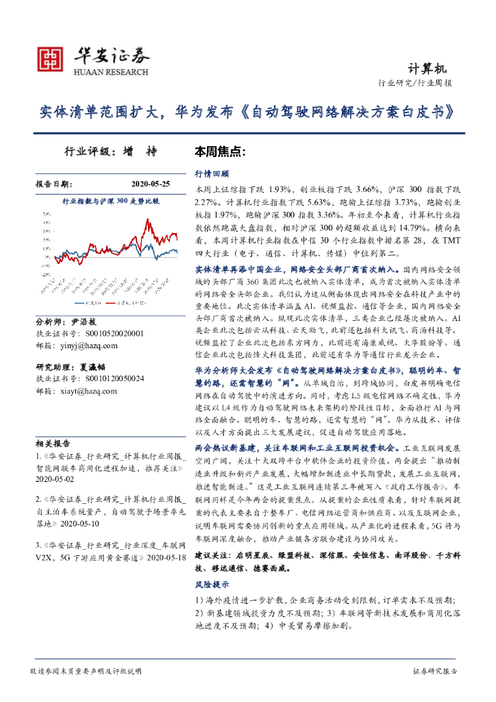 华安证券:计算机行业周报:实体清单范围扩大,华为发布《自动驾驶网络解决方案白皮书》.pdf