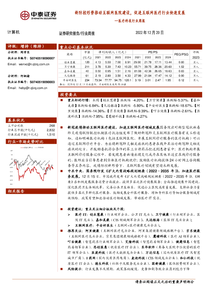 中泰证券:医疗科技行业周报:新防控形势推动互联网医院建设,促进互联网医疗行业快速发展.pdf