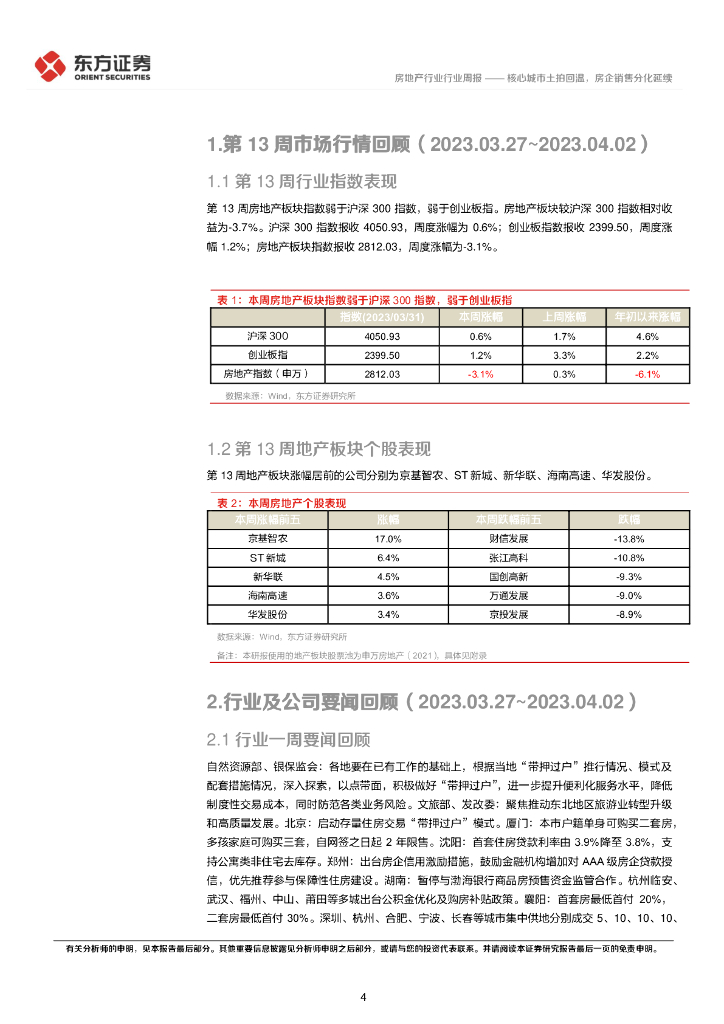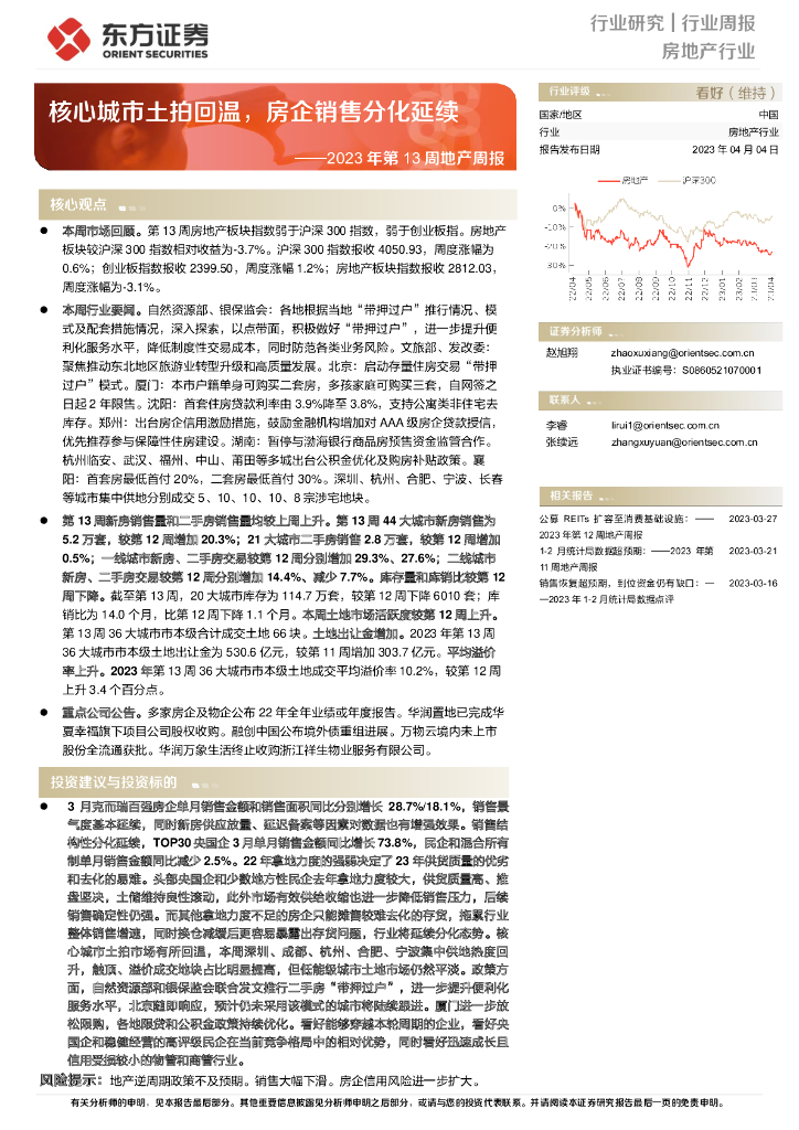 东方证券:2023年第13周地产周报:核心城市土拍回温,房企销售分化延续.pdf
