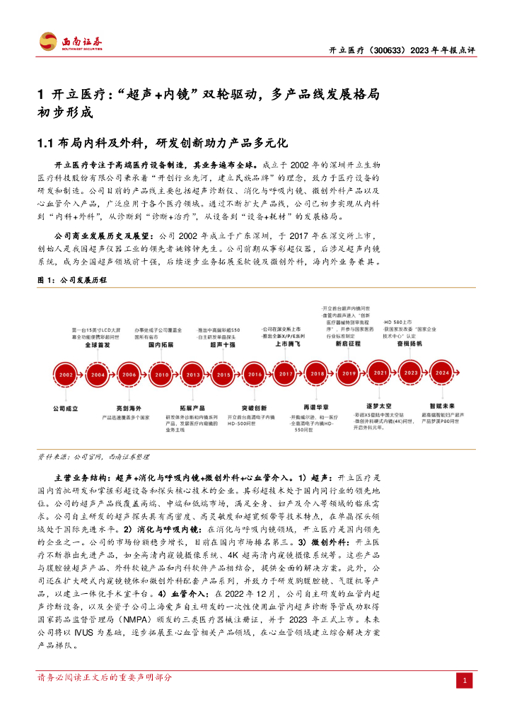 西南证券:开立医疗(300633)-业绩符合预期,超声内镜双轮驱动逻辑未变.pdf