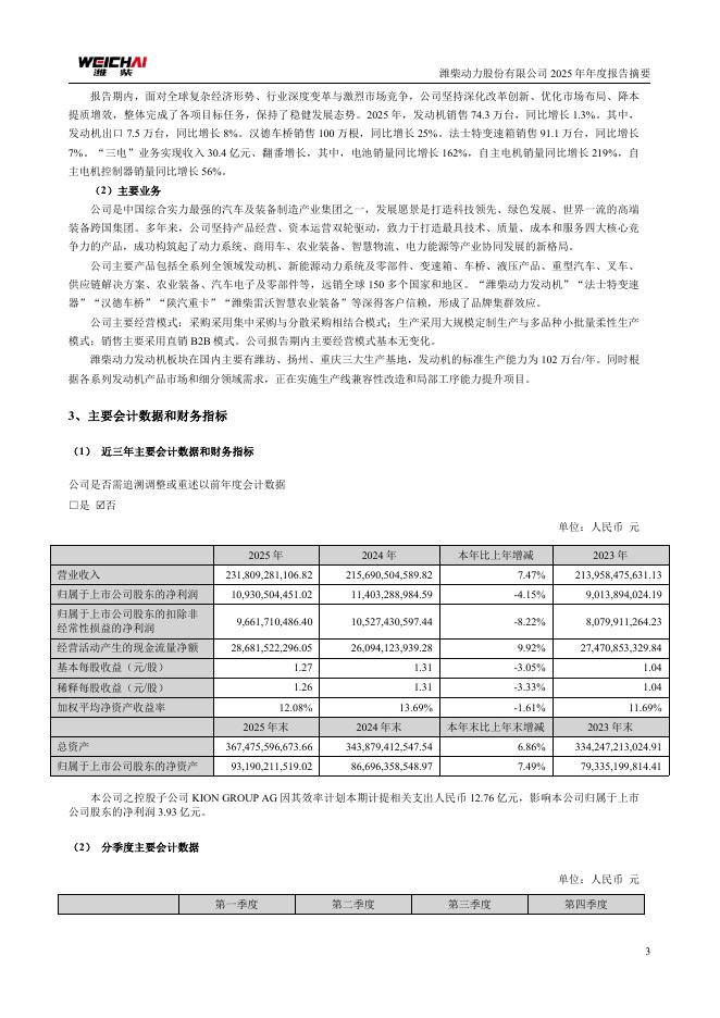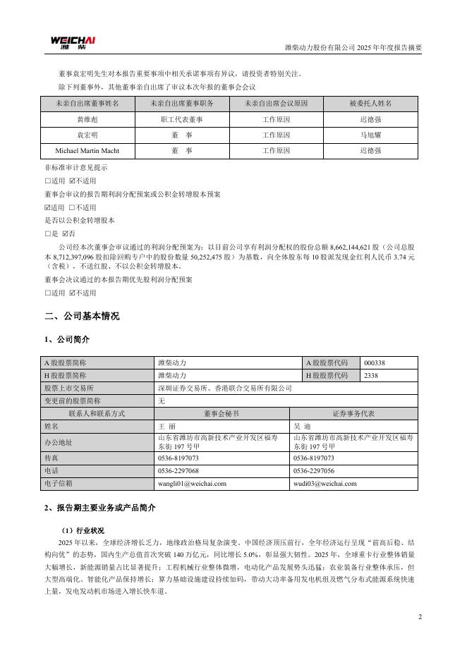 000338-潍柴动力:2025年年度报告摘要.pdf