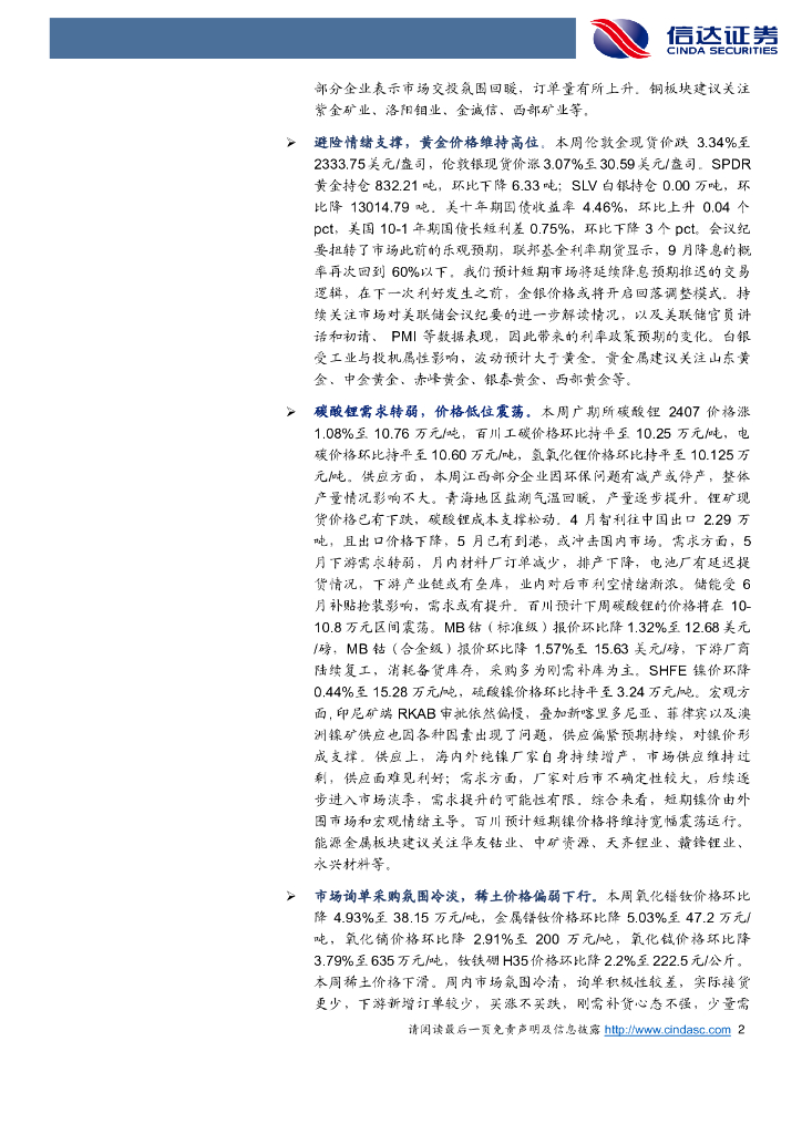 信达证券:有色金属周度报告:美联储会议纪要鹰态明显,不改金属价格长期上行趋势.pdf