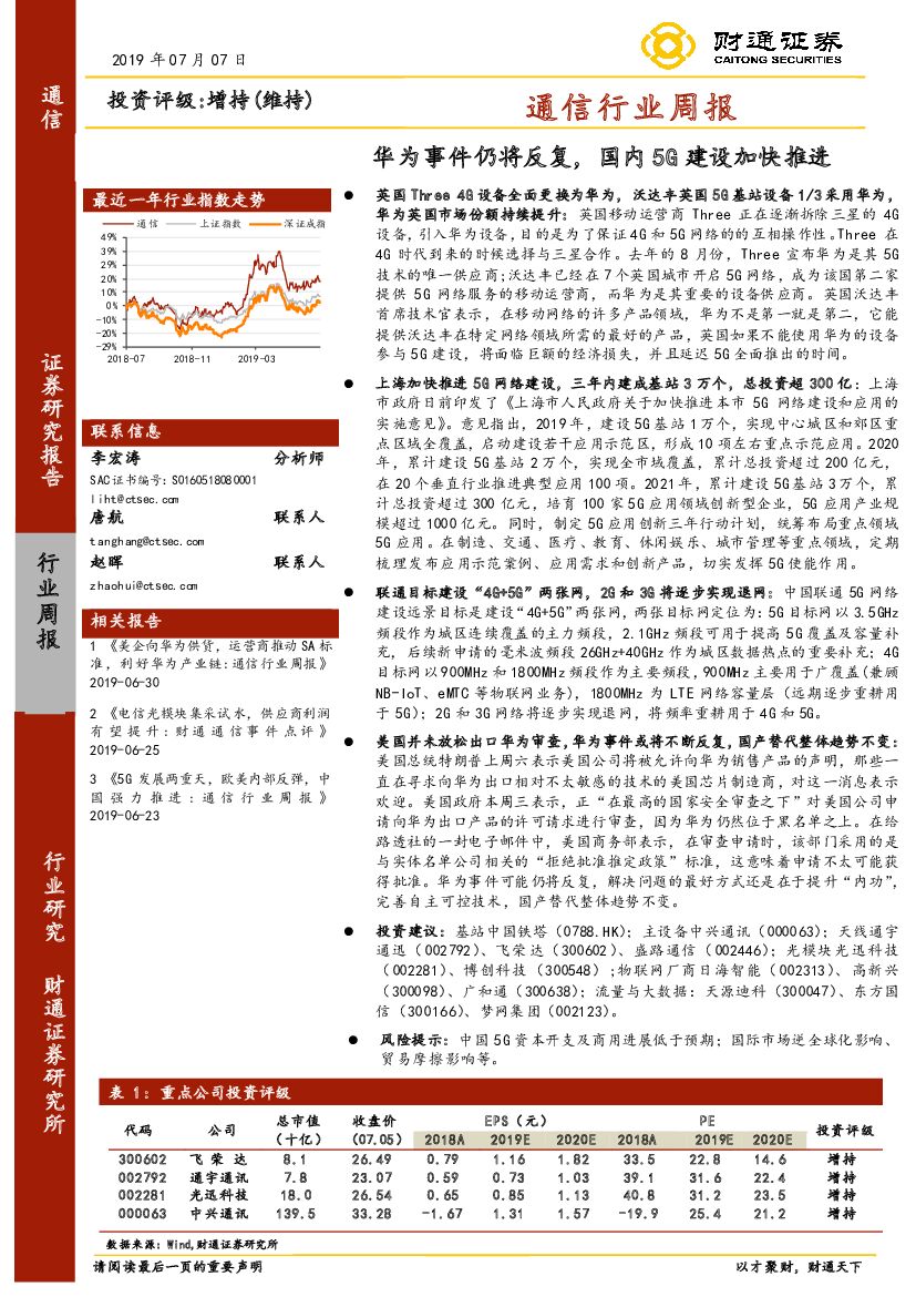 财通证券:通信行业周报:华为事件仍将反复,国内5G建设加快推进.pdf