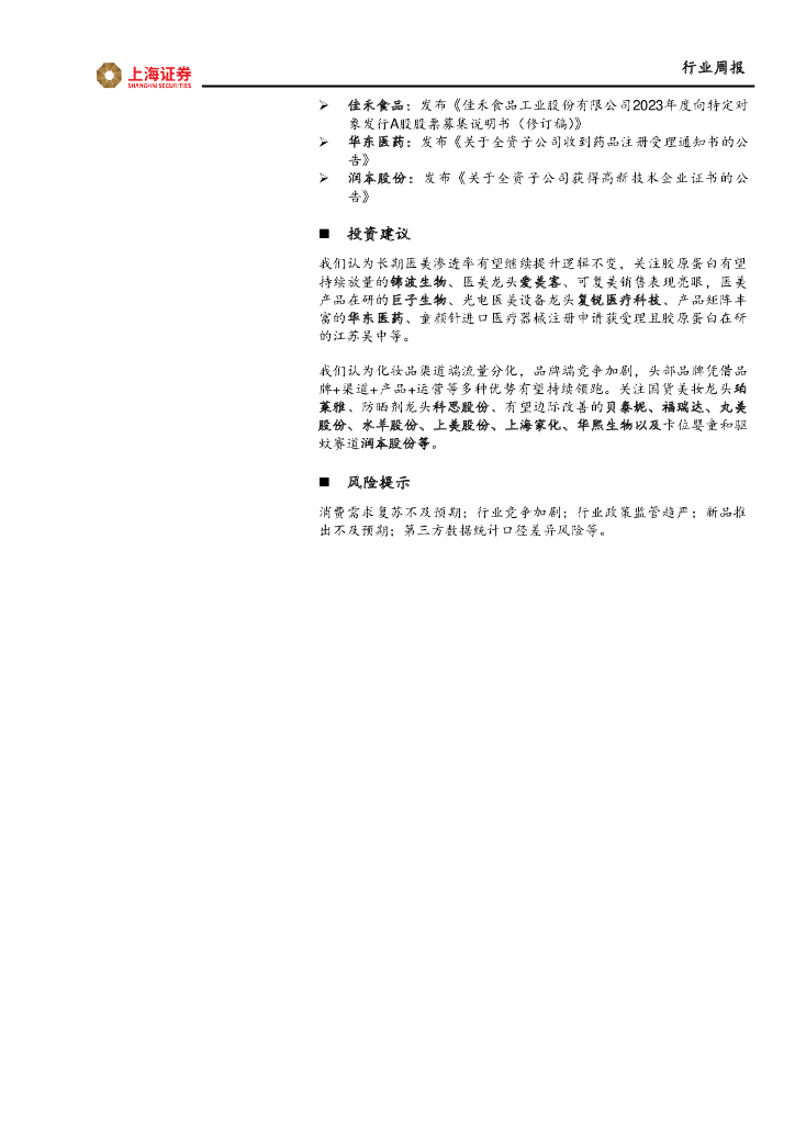 上海证券:美容护理行业周报:创健医疗启动上市辅导,丸美官宣防窜控价令.pdf