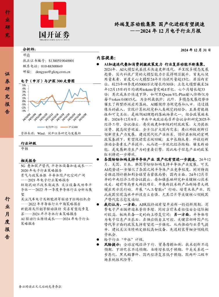 国开证券:2024年12月电子行业月报:终端复苏动能集聚国产化进程有望提速.pdf