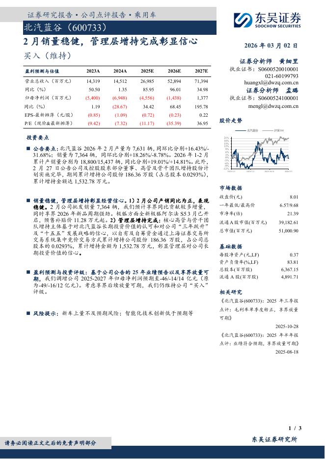 东吴证券:北汽蓝谷(600733)-2月销量稳健,管理层增持完成彰显信心.pdf