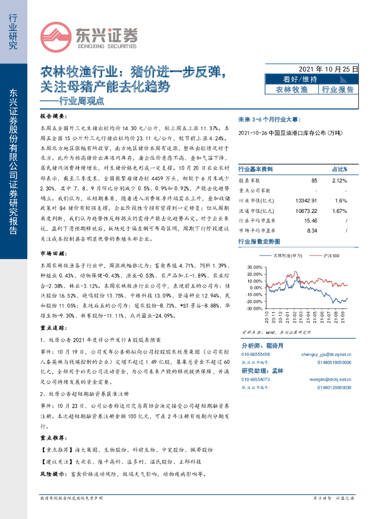 东兴证券:农林牧渔行业周观点:猪价进一步反弹,关注母猪产能去化趋势.pdf
