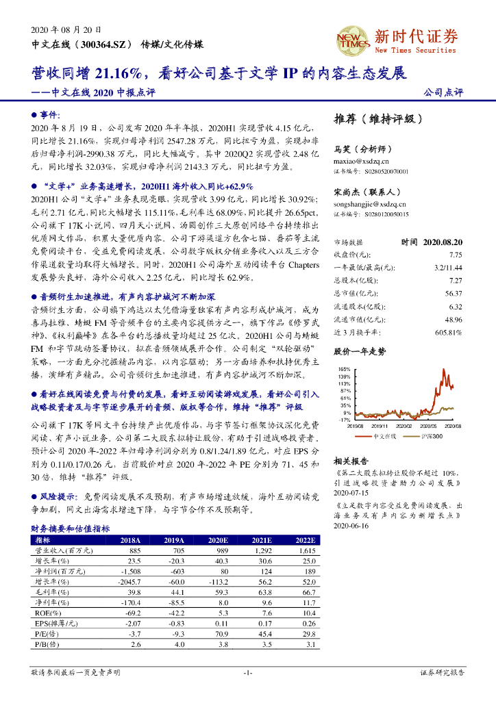 新时代证券:中文在线2020中报点评:营收同增21.16%,看好公司基于文学IP的内容生态发展.pdf