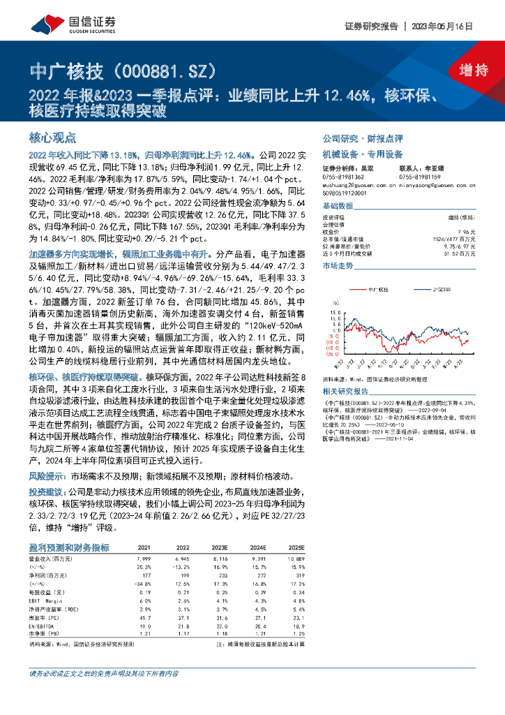 国信证券:中广核技(000881)-2022年报&2023一季报点评:业绩同比上升12.46%,核环保、核医疗持续取得突破.pdf