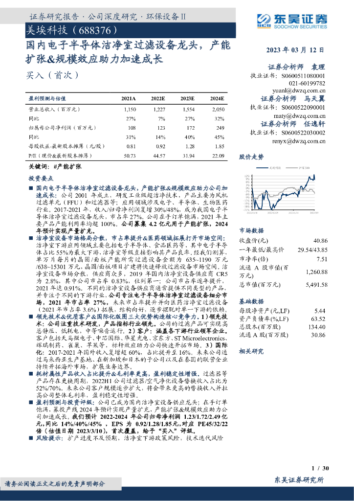 东吴证券:美埃科技(688376)-国内电子半导体洁净室过滤设备龙头,产能扩张&规模效应助力加速成长.pdf