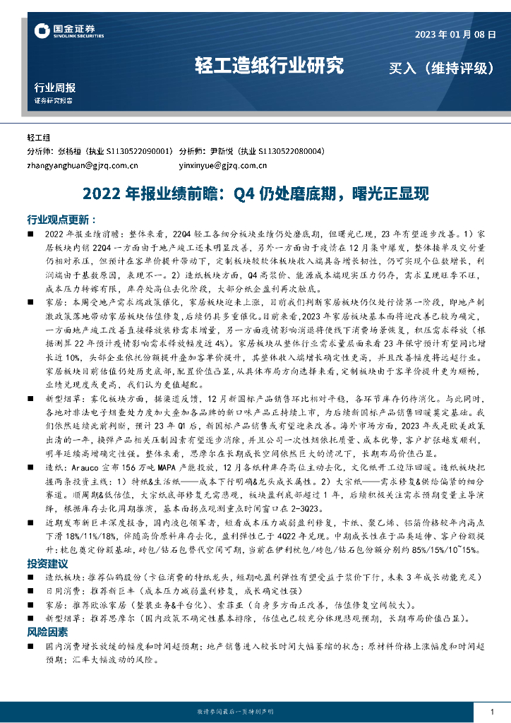 国金证券:轻工造纸行业研究:2022年报业绩前瞻:Q4仍处磨底期,曙光正显现.pdf