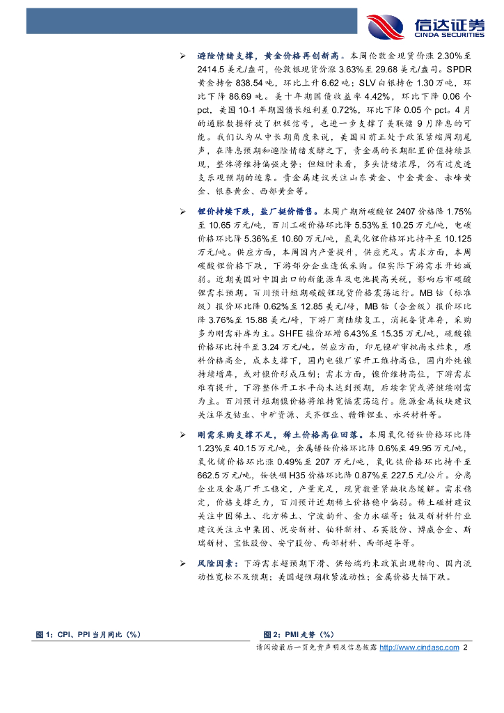 信达证券:有色金属周度报告:国内地产政策加码叠加海外降息预期升温,金属价格全面上行.pdf