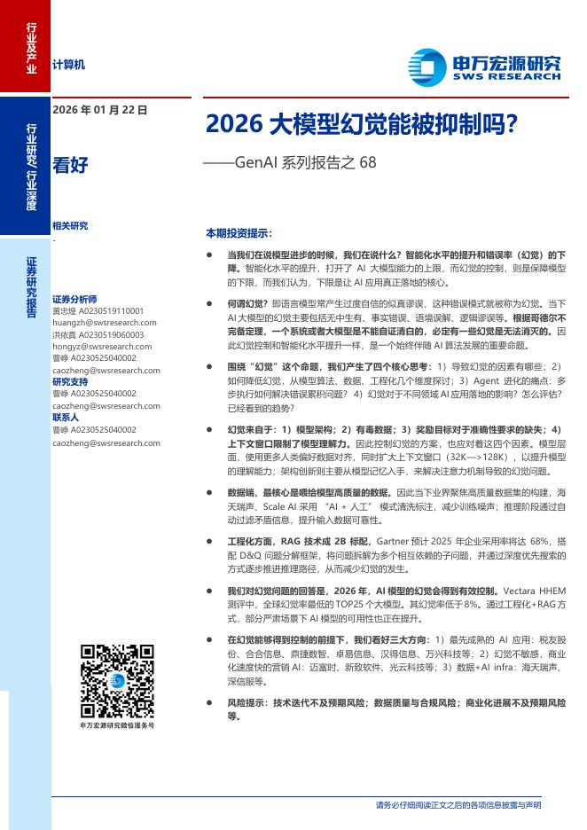 申万宏源证券:GenAI系列报告之68:2026大模型幻觉能被抑制吗?.pdf