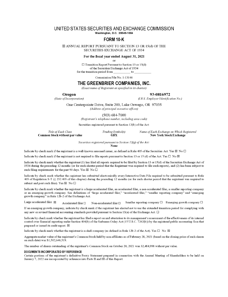Greenbrier Companies(GBX)2021财年年度报告(英文版).pdf
