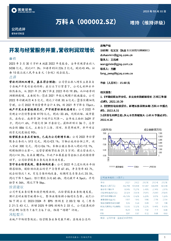 国金证券:万科A(000002)-开发与经营服务并重,营收利润双增长.pdf