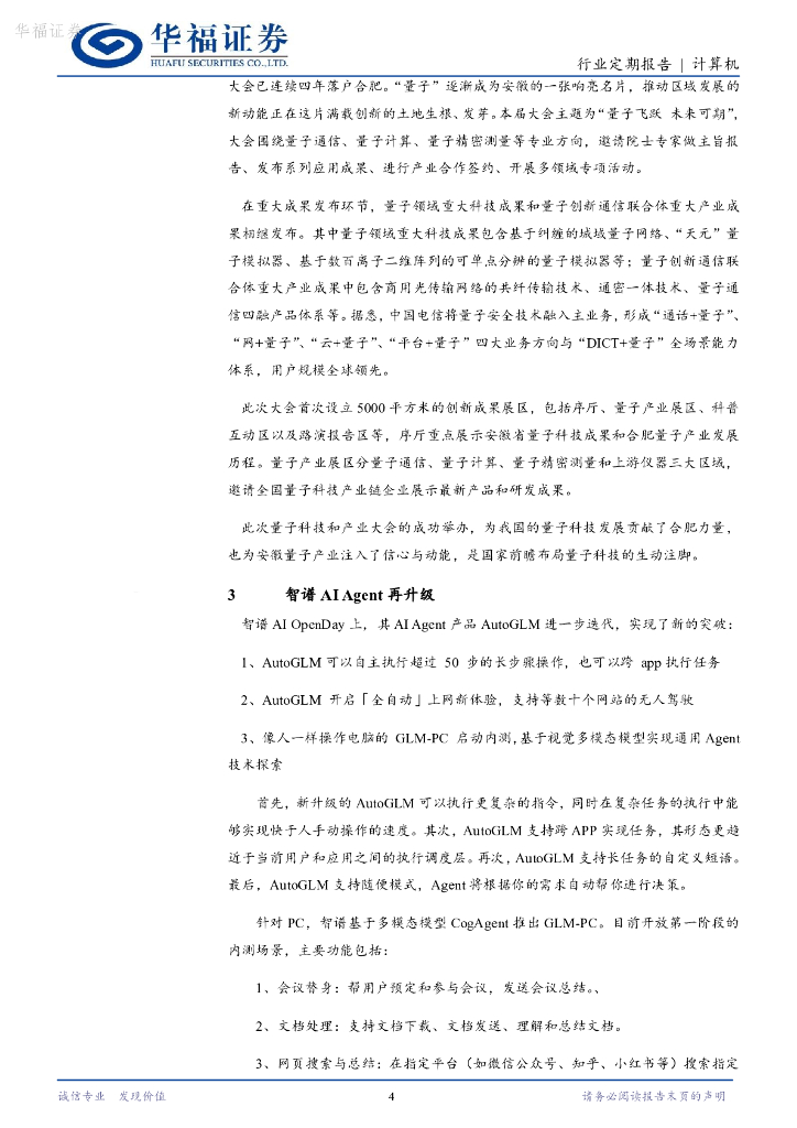 华福证券:计算机行业定期报告:智谱AIAgent全面升级,合肥举办量子科技和产业大会.pdf