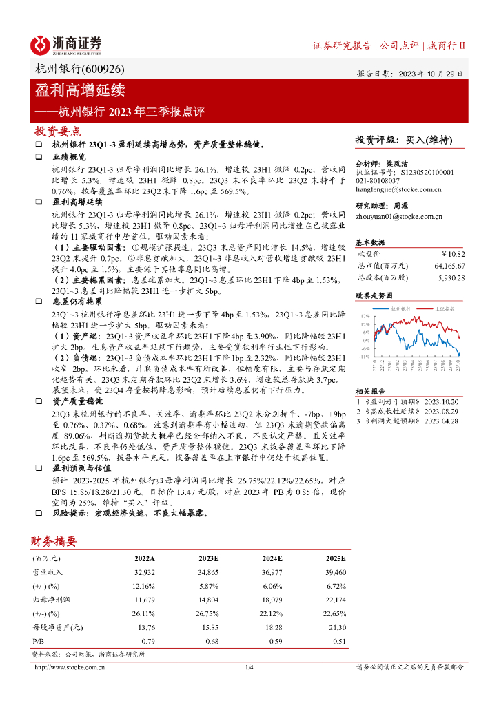 浙商证券:杭州银行(600926)-盈利高增延续.pdf