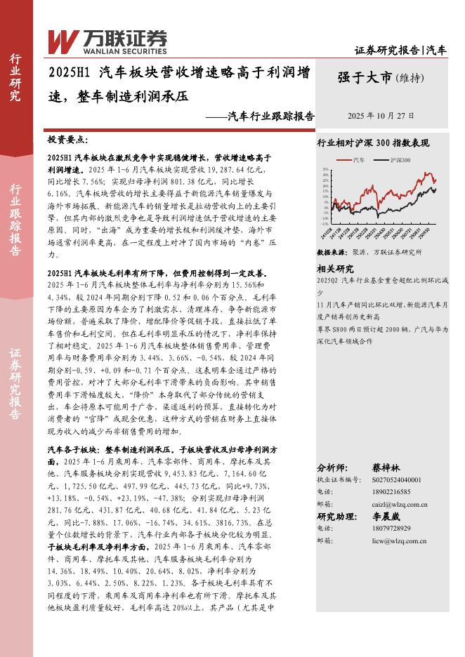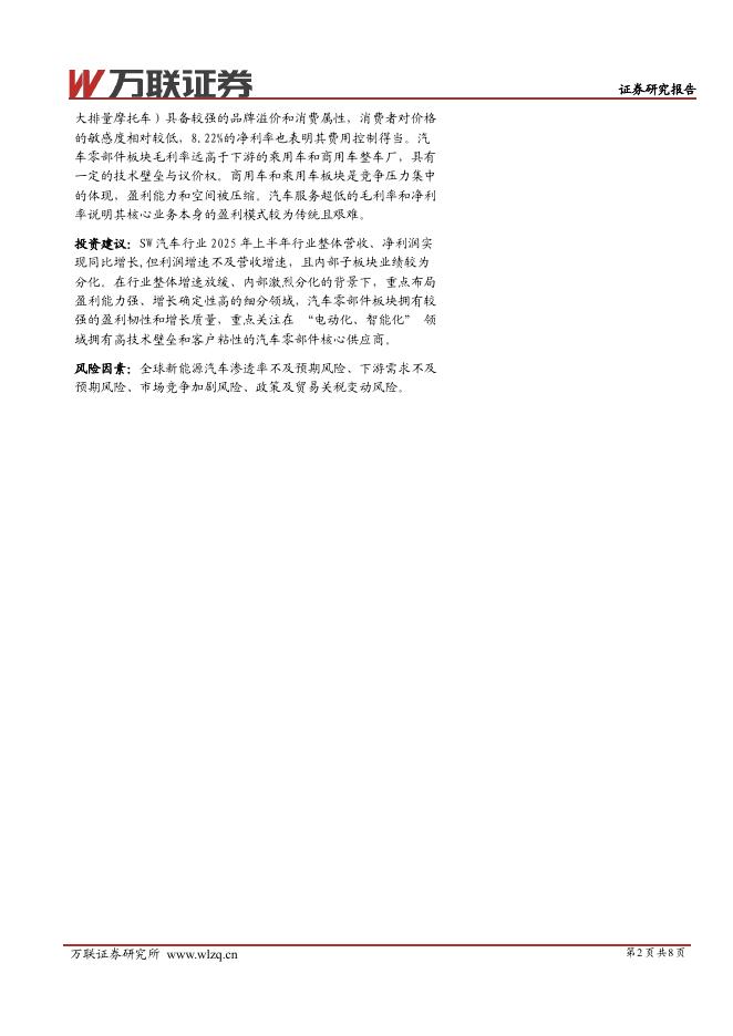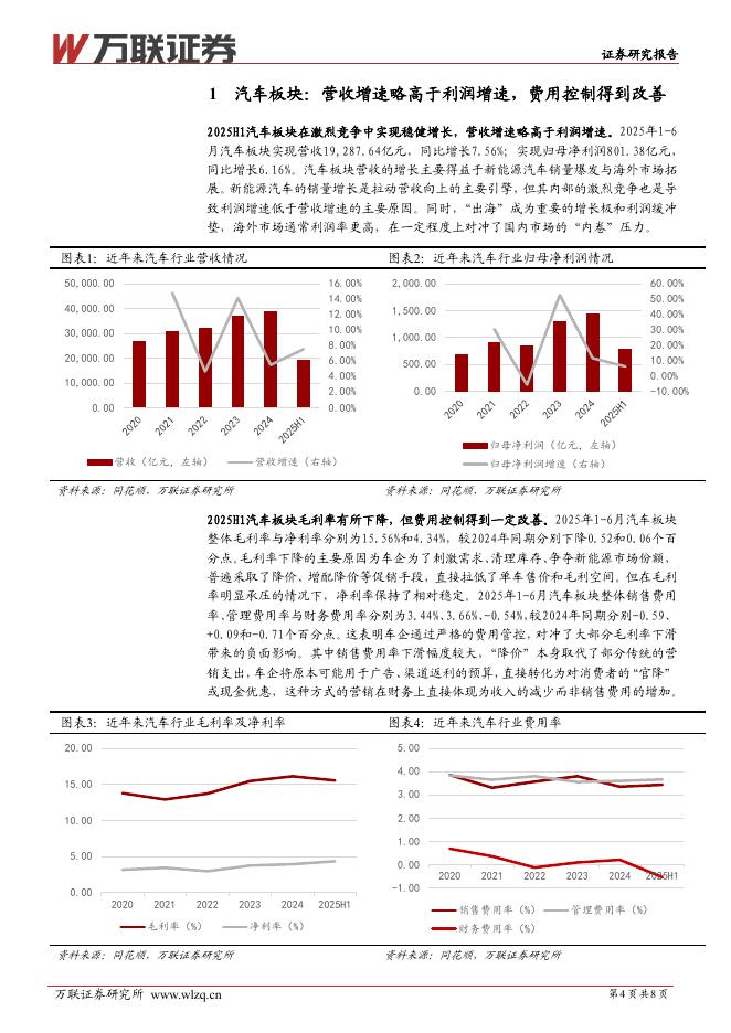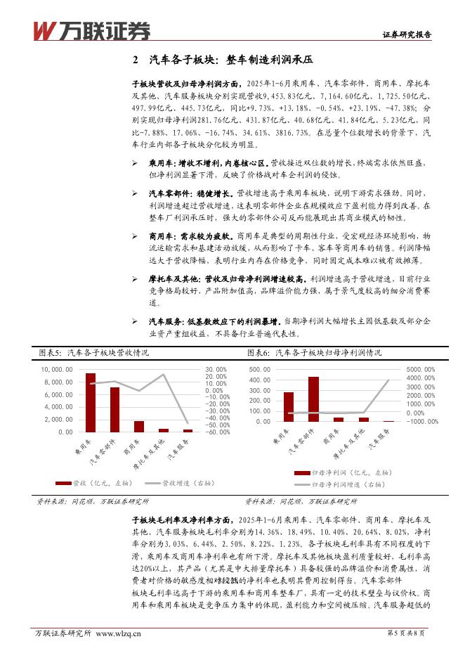 万联证券:汽车行业跟踪报告:2025H1汽车板块营收增速略高于利润增速,整车制造利润承压.pdf