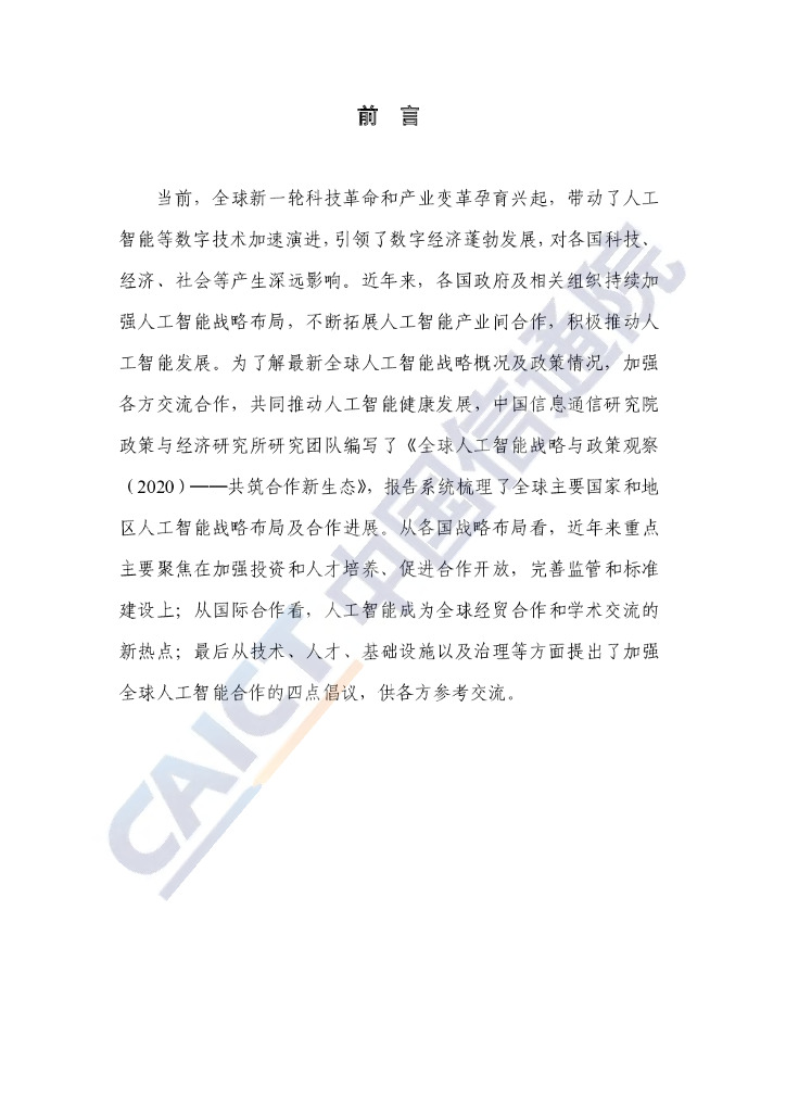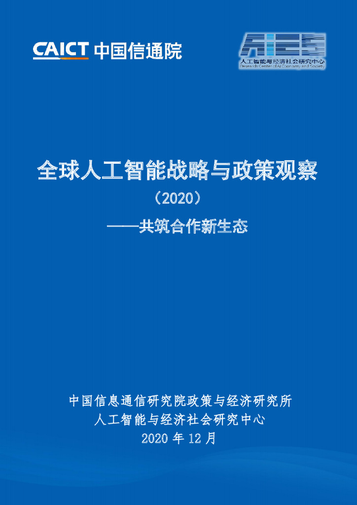 中国信通院:全球人工智能战略与政策观察(2020)共筑合作新生态.pdf