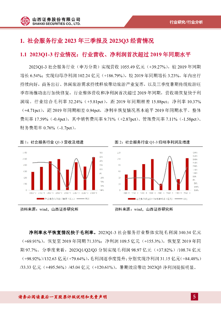 山西证券:社服行业2023年三季报综述:三季度行业利润端恢复快于营收端,酒店、出境游业绩增速居前.pdf