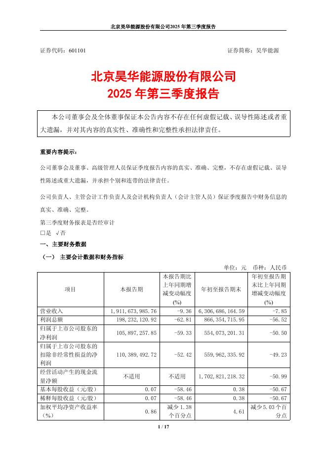 601101-昊华能源:北京昊华能源股份有限公司2025年第三季度报告.pdf