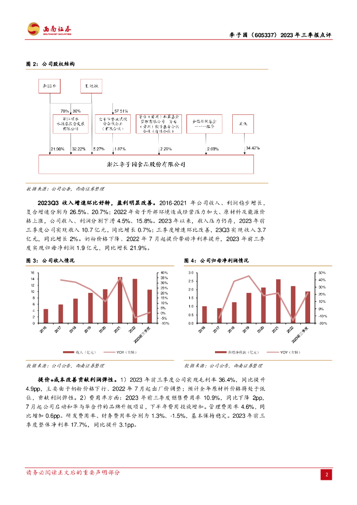 西南证券:李子园(605337)-2023年三季报点评:全年盈利改善,回购+增持信心充足.pdf