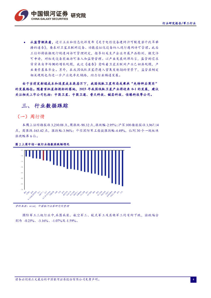 中国银河:军工行业双周报:卫星物联网商用试验启动,产业闭环逐步成型