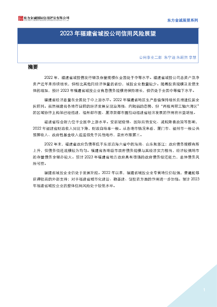 东方金诚:展望系列-福建省城投公司信用风险展望.pdf