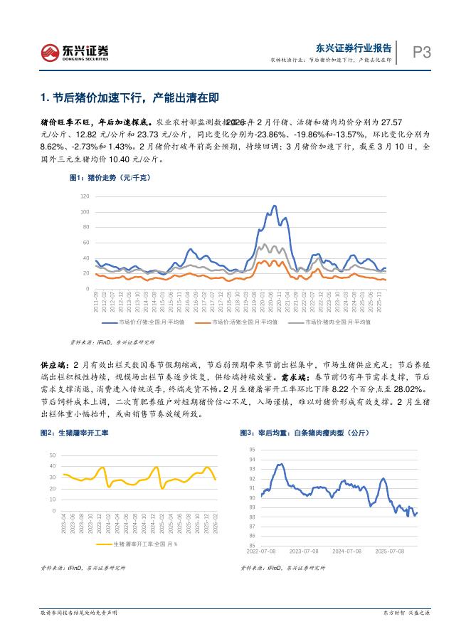 东兴证券:生猪养殖行业月度跟踪:农林牧渔行业:节后猪价加速下行,产能去化在即.pdf
