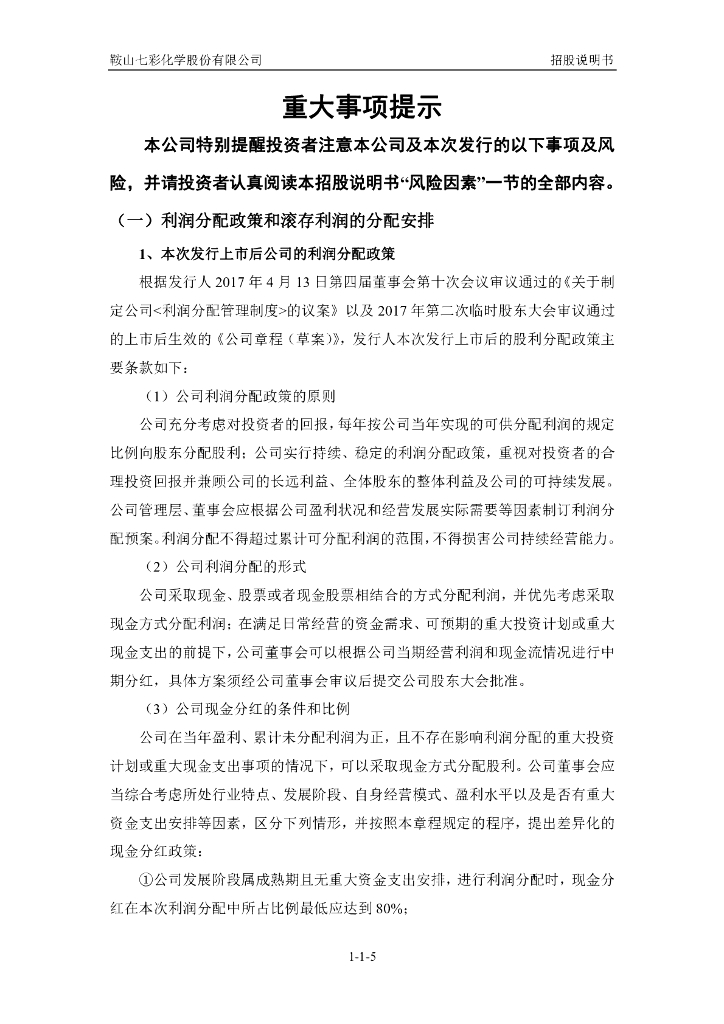 鞍山七彩化学股份有限公司深交所创业板IPO上市招股说明书.pdf