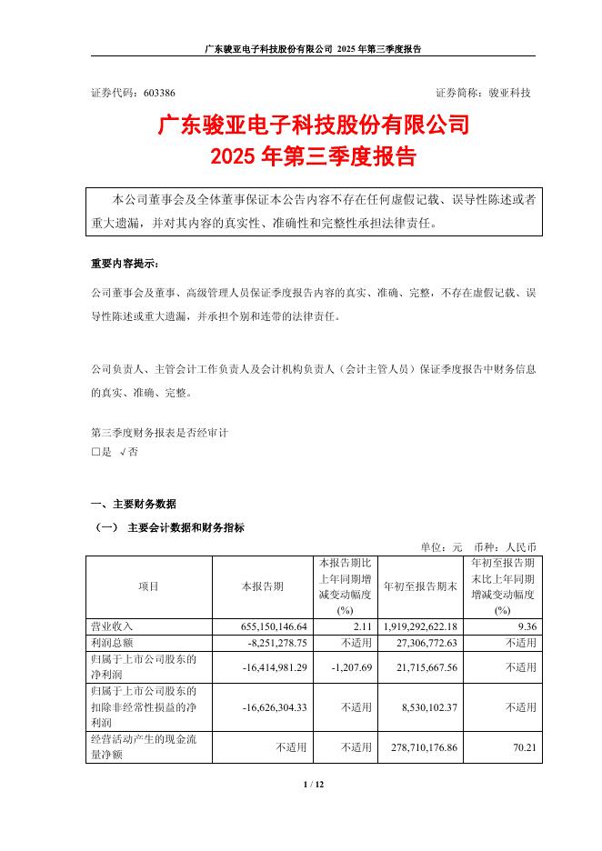 603386-骏亚科技:2025年第三季度报告.pdf