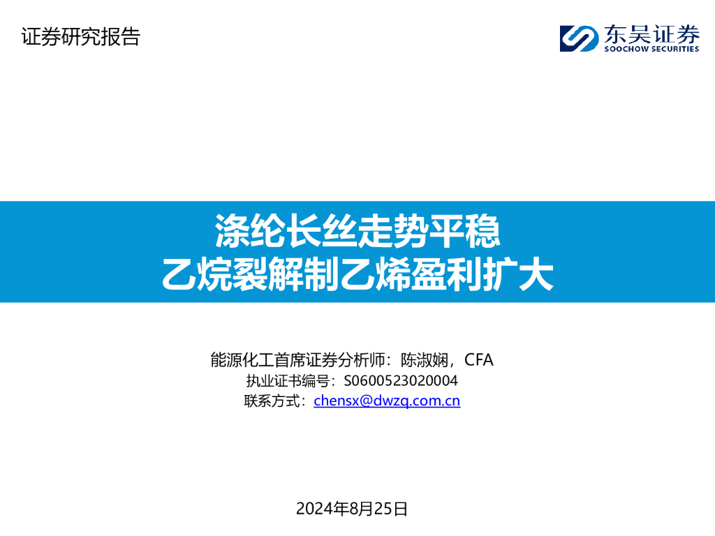 东吴证券:能源化工行业:涤纶长丝走势平稳,乙烷裂解制乙烯盈利扩大.pdf