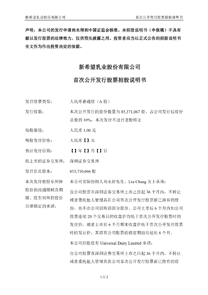 新希望乳业股份有限公司深交所主板IPO上市招股说明书.pdf