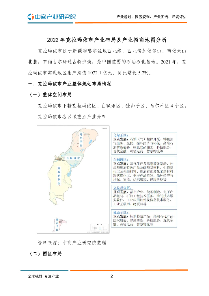 中商产业研究院:2022年克拉玛依市产业布局及产业招商地图分析.pdf